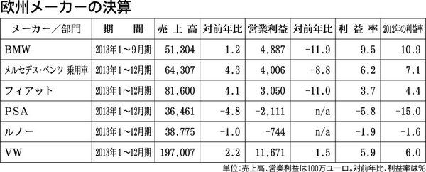 〈海外リポート〉欧州主要メーカーの2013年決算