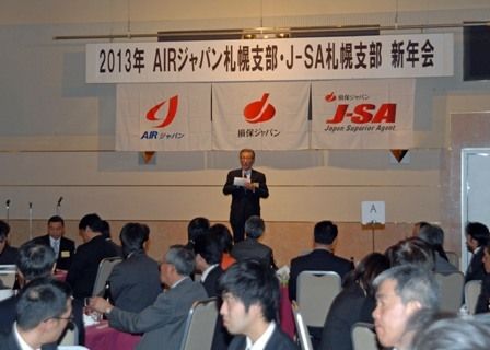 AIRジャパン札幌支部(荒関伸支部長)は、保険プロ代理店組織のJ―SA札幌支部(白戸俊成支部長)と合同の新年会を開催した。損害保険ジャパン札幌支店の担当者を含め約70人が参加した。 両者の合同新年会は今年で3回目。はじめに荒関支部長は「3...