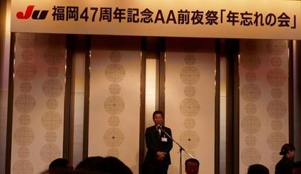 JU福岡は6日、福岡市博多区のホテルで「年忘れの会」を開催した。47周年記念オートオークションの前夜祭でもあり、来賓や九州地区のJUトップ、取引先関係者ら多数が出席した。 式典で、日本中古自動車販売協会連合会(JU中販連)の海津博会長が、...