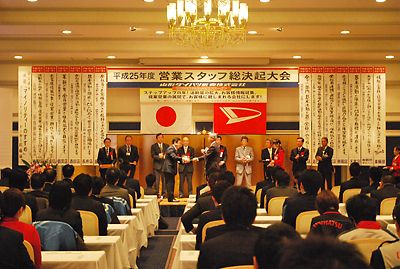 【天童】山形ダイハツ(鈴木重行社長)は1月25日、天童市のアンジェリーナで「2013年度営業スタッフ総決起大会」を開催した。大会には同社員に加え、来賓のダイハツ工業国内営業部地域統括室の中村英之次長ら160人が出席。12年に優秀な実績を上...