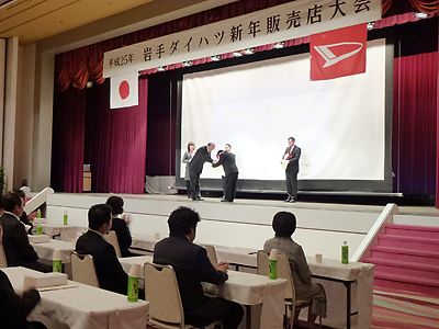 【花巻】岩手ダイハツ(大髙清社長)は1月26日、花巻市内のホテルで「2013年・新年販売店大会」を開催。昨年1年間で県内のダイハツ車販売で功績のあった協力販売店66社を表彰した。 冒頭のセレモニーで大髙社長は「昨年のダイハツ車販売は、皆さ...