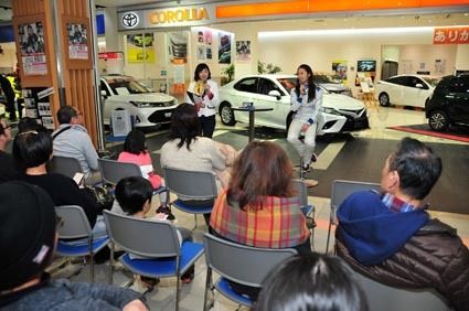 カローラ大阪、レーサーの小山美姫さん招いてアリオ八尾店でトークショー