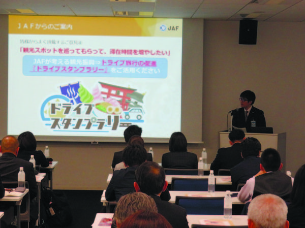 日本自動車連盟(JAF)関西本部(堀内俊樹本部長)は7日、グランフロント大阪(大阪市北区)で「関西自治体・優待施設交流会」を開催した。観光協定を結ぶ自治体や優待施設の関係者76人が出席した。 JAFの新たな観光振興策として、スマートフォン...