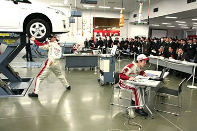 東京トヨタ(川島新一社長)は1月22日、港区芝浦のトヨタ自動車南関東サービス分室で「2012年度サービス技術コンクール」を開催した。サービススタッフと営業スタッフ30人が参加し、整備や顧客応対の腕を競った。 トヨタ部門では営業スタッフ・ハ...