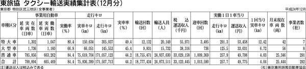 【東旅協 タクシー輸送実績集計表(12月分)】