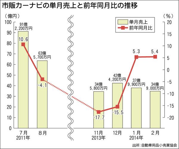 年度末商戦も佳境を迎え、用品販売店は活況を呈している。その中で、販売店担当バイヤーが安堵の声を漏らすのが、昨今、明るい話題の少なかったカーナビだ。1月の売り上げが地デジ特需に沸いた2011年7月以来30カ月ぶりに前年同月水準を上回るなど、...