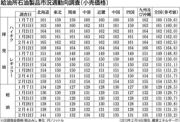 【給油所石油製品市況週動向調査(小売価格)】