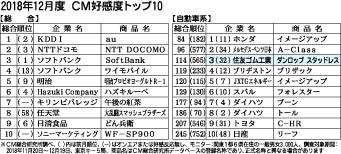 ■商品の特徴をキャッチーに表現 CM総合研究所(関根心太郎代表、東京都港区)は、2018年12月度のCM好感度ランキングを公表した。総合では、KDDI、NTTドコモらキャリア(通信事業者)が上位を固めた。自動車業類ではホンダのイメージアッ...