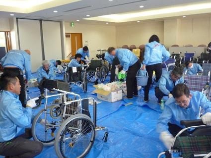 AIR岐阜と岐阜中央支部、老人ホームで車いす整備・清掃実施