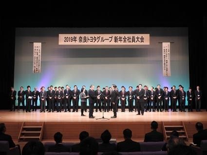 【奈良】奈良トヨタ(菊池攻社長)グループは9日、ペガサスホール(上牧町)で「2019年奈良トヨタグループ新年全社員大会」を開いた。グループ3社(奈良トヨタ、トヨタカローラ奈良、トヨタL&F奈良)の役員や従業員らが出席した。菊池社長の年頭の...