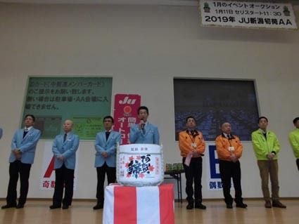 【新潟】新潟県中古自動車販売商工組合(JU新潟、海津博理事長)は、「2019年JU新潟初荷オートオークション(AA)」を開催した。 競り開始前のセレモニーで海津理事長は、「昨年からオークション事業を中心に、順調に推移している。1年間の協力...