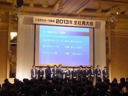 【仙台】トヨタカローラ宮城(吉岡博文社長)はこのほど、仙台ロイヤルパークホテルで、2013年の年頭全社員大会と12年年間表彰を開催した。 13年の会社方針スローガンは「向上心に基づく成長・育成」を掲げる。人材力の向上プロジェクトを立ち上げ...