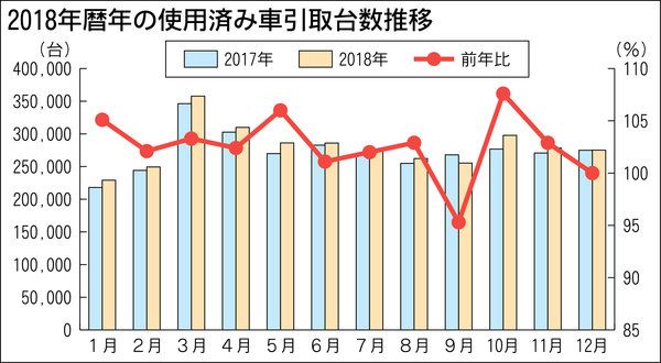 2018年(1~12月)の使用済み自動車(ELV)引取台数が2年連続で前年実績を上回った。自動車リサイクル促進センター(JARC、中村崇代表理事)のまとめによると、18年実績は前年比2・6%増の336万827台となり4年ぶりに330万台に...