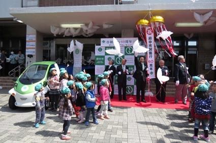トヨタ西東京カローラの舟橋竹彦社長は1日、府中市(高野律雄市長)役所で開催された市制60周年記念セレモニーに唯一の企業来賓として出席した。 府中市市制60周年記念セレモニーは、同社が寄贈した超小型一人乗り電気自動車「コムス」に乗った高野市...