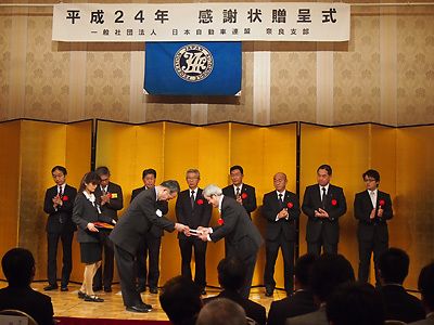 【奈良】日本自動車連盟(JAF)奈良支部(菊池攻支部長)はこのほど、ホテル日航奈良(奈良市)で「平成24年感謝の会」を開催した。会員入会促進で優秀な成績だった自動車販売店や指定工場、個人を表彰した。 年間個人優秀賞では、最優秀の村嶋剛志さ...