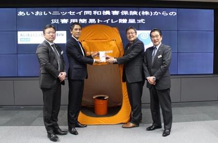 あいおいニッセイ同和損保茨城支店、県に災害用テント型簡易トイレ寄贈
