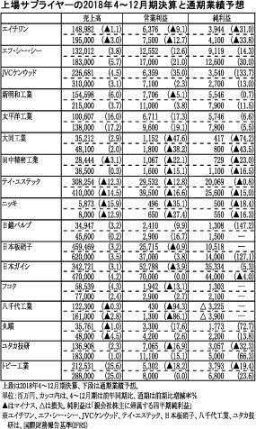 【上場サプライヤーの2018年4~12月期決算と通期業績予想】