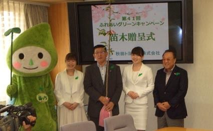 秋田トヨペット、県に苗木100本寄贈 ふれあいグリーンキャンペーン