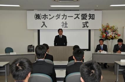 ホンダカーズ愛知は3日、名古屋市南区の営業本部会議室で「平成26年度入社式」を開催した。定期採用の新卒者20人と中途採用の3人が顔を揃え、1日に就任した関口直行新社長が辞令を手渡した。 新入社員の内訳は、新卒者が営業5人、整備13人、業務...