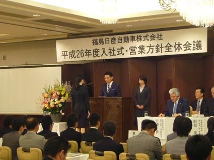 【福島】福島日産(金子與志人社長)の2014年度入社式は3日、福島市のウェディングエルティで行われ、17人(大学卒1人、専門学校卒9人、高校卒5人)の新入社員が期待に胸膨らませ企業人としての一歩を踏み出した。 金子社長は挨拶で、「震災から...