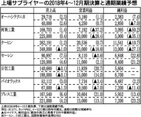 【上場サプライヤーの2018年4~12月期決算と通期業績予想】