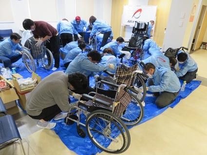損害保険ジャパン日本興亜の代理店組織のAIRオートクラブ大阪北支部(前田義範支部長)は3日、複合介護施設「利倉清豊苑」(豊中市)で入居者らが使用する車いす17台の点検整備と清掃のボランティア活動を実施した。支部会員と損保ジャパン社員の22...