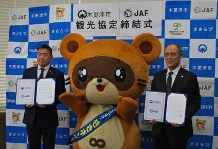 【千葉】日本自動車連盟(JAF)千葉支部(上出賢治支部長)は、木更津市(渡辺芳邦市長)と「観光協定」を締結した。相互連携を強化するとともに、同市の観光情報をJAFのウェブサイトや会報を通じ、全国1930万会員に向けて発信する。ドライブ観光...