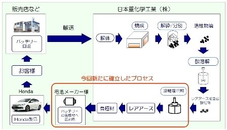 ホンダは、ハイブリッド車(HV)に搭載しているニッケル水素電池から抽出したネオジムなどのレアアース(希土類)を新たな電池材料として再利用する仕組みを世界で初めて確立した。鉱山から採掘するレアアースとほぼ同じ純度が得られたという。廃車の増加...