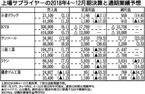 【上場サプライヤーの2018年4~12月期決算と通期業績予想】
