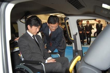 関東運輸局長、ジャパンタクシーの車いす乗降操作体験