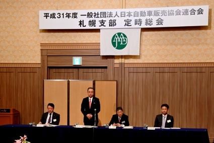 自販連札幌支部(中島好美支部長)は15日、市内のホテルで「平成31年度定時総会」を開いた。ワンストップサービス(OSS)の推進などを盛り込んだ新年度事業計画を承認した。 冒頭、中島支部長は「道内の年間新車登録実績に占める札幌・室蘭地区のウ...
