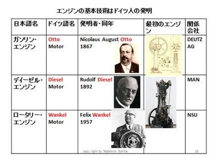 ◆ドイツ自動車業界の曙 蒸気自動車、2輪の自転車、馬車のカロッツエリアと市場環境が整っていた時にガソリンエンジン、ディーゼルエンジンが発明された。ちなみに主要エンジンの発明は全てドイツ人の手になるもの。ドイツ語でのエンジン名には発明者の名前...