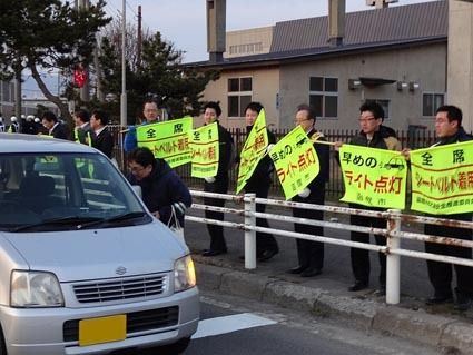 【函館】日本自動車販売協会連合会(自販連)函館支部(河村祥史支部長)は「平成26年春の全国交通安全運動」に協力し、街頭啓発活動を展開した。各社のスタッフが朝の通勤ラッシュ時に交通安全を啓発する旗をかざし、安全運転を訴えた。 死亡交通事故の...