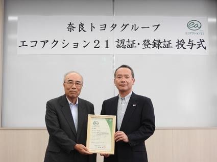 【奈良】奈良トヨタ(菊池攻社長)グループはこのほど、環境省が推進する「エコアクション21」の認証・登録を受けた。今回の登録対象は、奈良トヨタ本社(奈良県田原本町)、トヨタカローラ奈良本社・奈良店(奈良市)、トヨタレンタリース奈良本社・奈良...