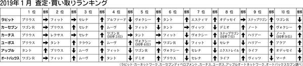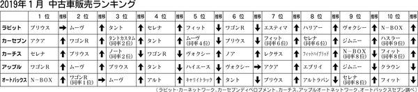 中古車関連企業の6社は2019年1月の中古車査定・買い取り、販売実績(ユーポスは買い取りのみ)をまとめた。査定・買い取り、販売とも軽トール系ワゴンが引き続き好調だったほか、上位にはセダン系ハイブリッド車(HV)も入った。年度末に向けた乗り...