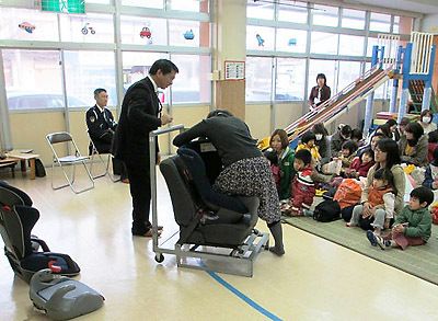 日本自動車連盟(JAF)新潟支部(等々力徹支部長)は8日、上越市の稲田保育園で「チャイルドシート・着用セミナー」を行った。当日は、園児の保護者を始め、市職員や警察官など約60人が参加。JAFインストラクターの指導の下、子供たちの命を守るシ...