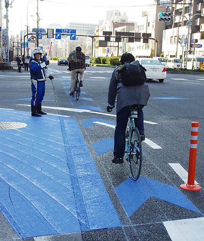 警視庁、自転車事故防止へ交差点改良「ナビライン」試行
