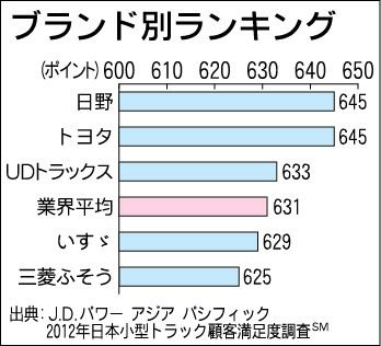 JDパワーアジア・パシフィック(鈴木郁社長、東京都港区)が14日発表した日本小型トラック顧客満足度調査で日野自動車とトヨタ自動車が同スコアで1位となった。月に1回以上営業担当者の訪問を受けている顧客ほど満足度が高いなど、営業の訪問頻度と有...