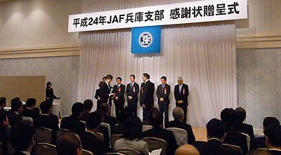 【神戸】日本自動車連盟(JAF)兵庫支部(四宮陸男支部長)はこのほど、神戸市内のホテルで「平成24年JAF兵庫支部感謝の会」を開き、約200人が参加した。会員獲得に貢献した新車ディーラーや営業スタッフらを表彰した。同支部では、昨年11月、...