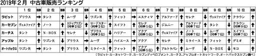 ◆軽トール系ワゴン、引き続き好調 中古車関連企業の6社は2019年2月の中古車査定・買い取り、販売実績(ユーポスは買い取りのみ)をまとめた。査定・買い取り、販売ともに引き続き軽自動車のトール系ワゴンが好調だったほか、セダン系ハイブリッド車...