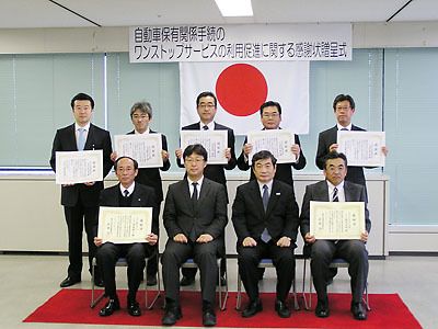 【大阪】近畿運輸局は18日、同局(大阪・大手前)で年間表彰「自動車保有関係手続きのワンストップサービス(OSS)の利用促進に関する感謝状贈呈式」を行った。過去6回は国土交通省自動車局長の感謝状伝達だったが、今回は近畿運輸局長感謝状贈呈が新...
