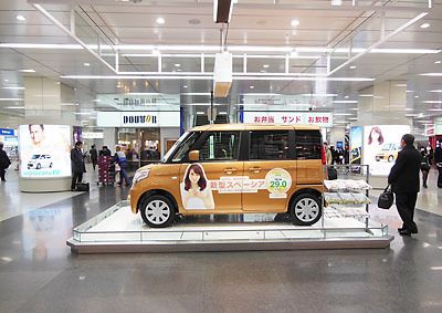 行きかう人に存在をアピールする「スペーシア」―。スズキは、JR新大阪駅の新幹線コンコース内で新型車「スペーシア」の展示を始めた。乗降客が多いコンコースで、しかも、その中央部にあるため、「待ち合わせの目印としても利用されているようだ」(スズ...