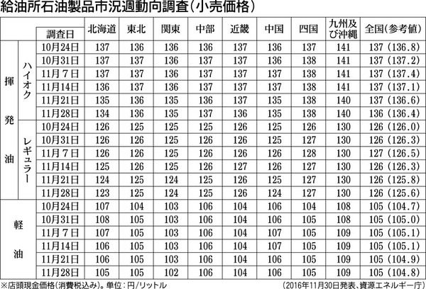 【給油所石油製品市況週動向調査(小売価格)】