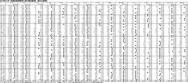 【2013年2月 地域別新車販売(含む軽自動車、海外生産車)】