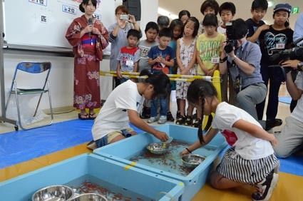 ネッツ岡山、全国金魚すくい選手権予選大会で参加者ら腕を競う