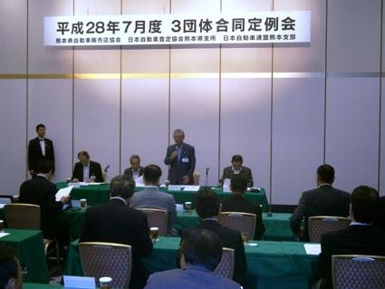 【熊本】熊本県自動車販売店協会(與縄義昭会長)と日本自動車査定協会熊本県支所(同支所長)、日本自動車連盟(JAF)熊本支部(梅﨑輝也支部長)はこのほど、熊本市中央区のホテルで「平成28年7月度3団体合同定例会」を開催した。定例会では今年上...