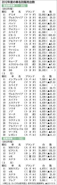 【2012年度の車名別販売台数】