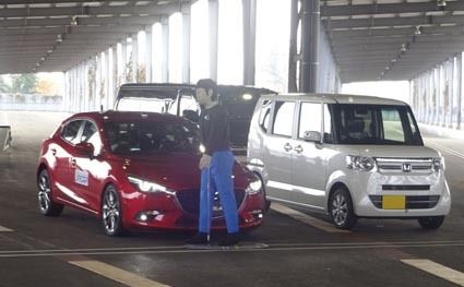 今回から始まった対歩行者衝突被害軽減ブレーキの評価試験は、歩行者が駐車車両の陰から道路を横断することを想定している。大人と子供を想定したダミーを使い、時速5キロメートルの速度で道路に飛び出させ、一定速度域で警報やブレーキの作動状況を試す。...