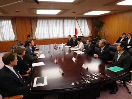 林幹雄経産相は26日、経産省内で英国のグレッグ・クラークビジネス・エネルギー産業戦略大臣と会談し、英国のEU離脱問題について「グローバル経済に関する責任を認識していただき、適切な対応をお願いしたい」と要請した。会談には日産自動車の川口均専...