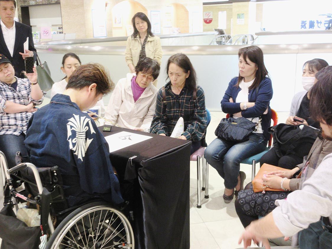 【横浜】横浜トヨペット(宮原漢二社長)は、本社ビル2階の「トヨタハートフルプラザ横浜」で浦上秀樹さんによる作品展「こころMoji展」を26日まで開催している。 作者の浦上さんは筋力が低下する遠位型ミオパチーという病を患っており、口に筆をく...